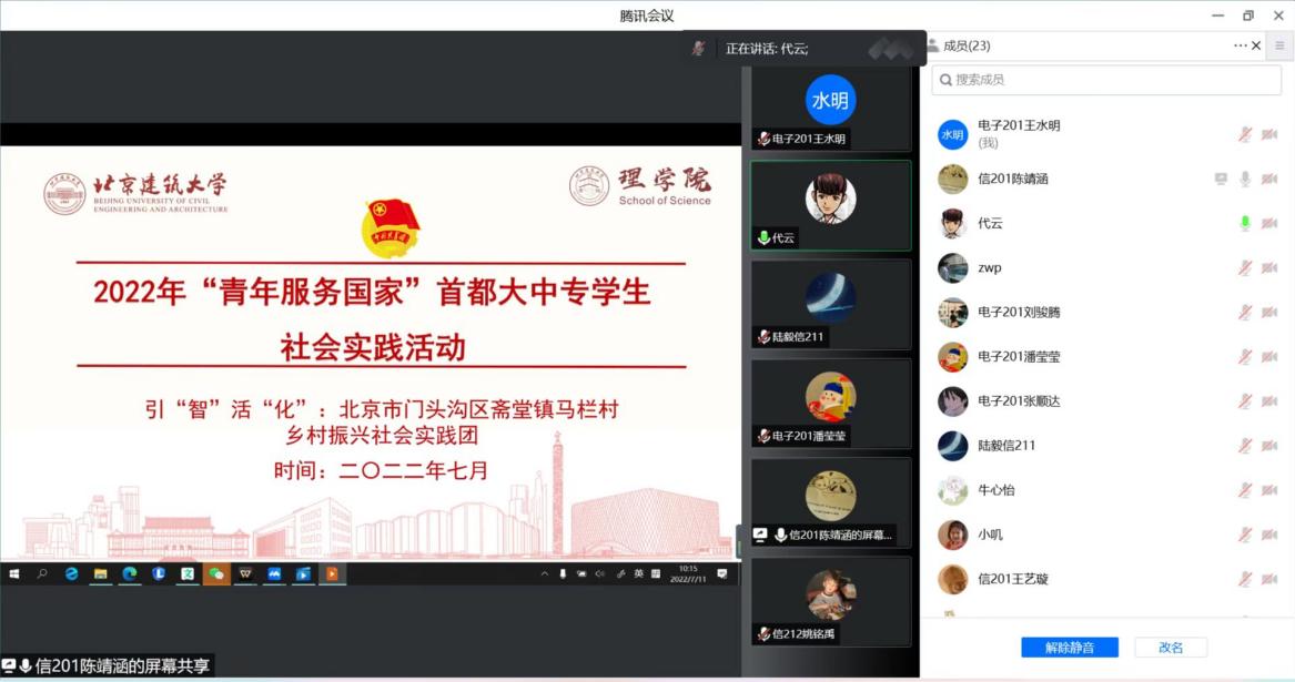 7月11日上午,淫妻小说 于线上开展2022年暑期社会实践动员大会。实践团师生围绕社会实践的注意事项、安全须知、成员分工,实践安排等进行交流讨论,大家提前查阅马栏村的地理位置、村史村貌、红色遗址等情况,为本次社会实践提前做好调研。
