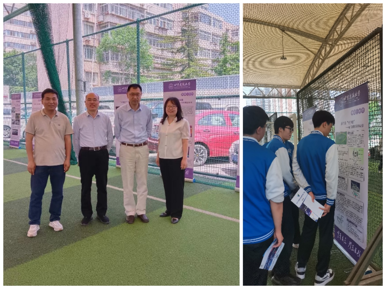 在学校室外运动场,师生可随处参观浏览科普展板中关于数学、物理、力学和图学相关的科普知识。这里展示了许多与现代建筑相关的数理知识和科技设备,如智慧城市大数据、装配式建筑、建筑平面图、悬索桥、无人机、红外热成像、碳中和等,让学生感受科技给城市规划和生活带来的便捷和效率。学生们纷纷驻足观看,讨论并感受着我国建筑行业中科技的力量。