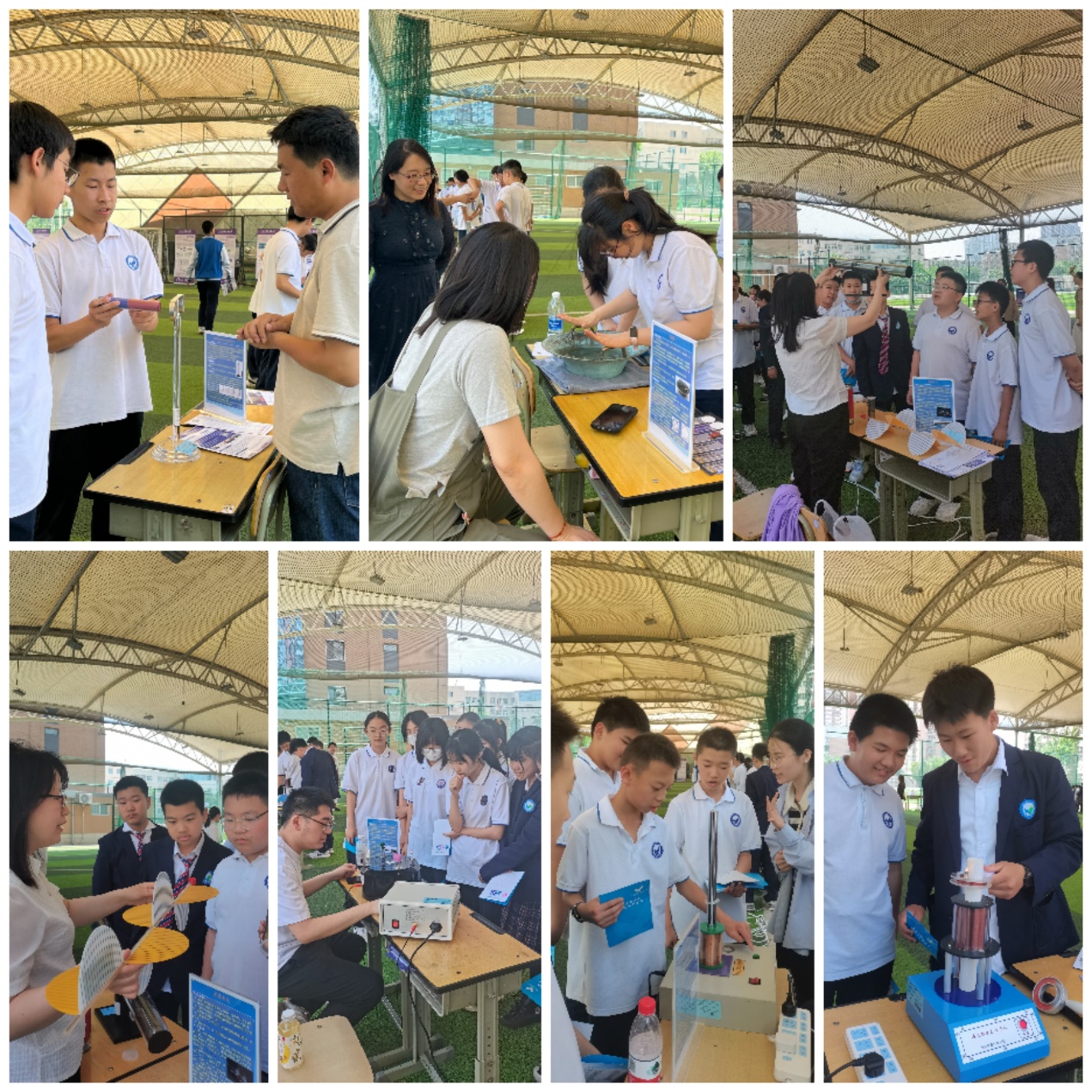 在物理演示实验的各个展台中,教师通过穿墙而过、涡流热效应、跳环楞次定律演示、共振小人、鱼洗等物理模型向学生展示了物理中的力、电、光、磁、声现象,通过场景式、沉浸式的科普体验让感受到了物理的神奇、神秘之处,激发青少年的探索意识。