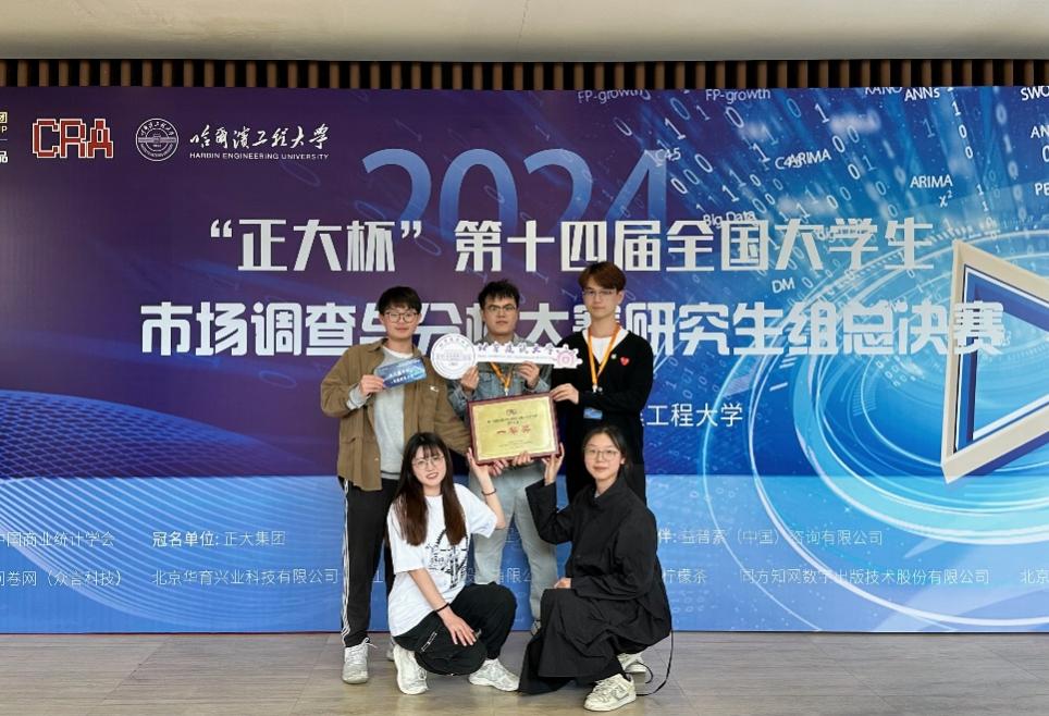 近日,由中国商业统计学会、全国大学生市场调查与分析大赛组委会主办,正大集团冠名的“正大杯”第十四届全国大学生市场调查与分析大赛研究生组决赛在哈尔滨工程大学圆满落幕。本次比赛我院一支研究生团队经过层层选拔,一路过关斩将,出色地完成了线下答辩,荣获本届“正大杯”市场调查与分析大赛全国一等奖!