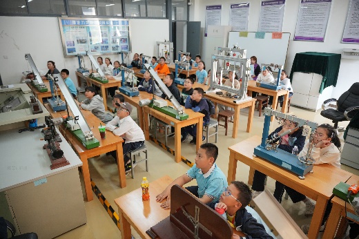 作为学校基础研究的重要平台,除了日常的实验教学任务以外,还要充分发挥示范辐射引领作用。为打造开放型实验室,力学实验室开放所有实验项目,并根据不同的学习对象,分不同层次开发课程模块。以趣味科普为主,培养小学、初中学生的浓厚兴趣;以启发实践为主,为高中、本科低年级学生入门领路;以设计综合为主,鼓励本科高年级学生开展研究。