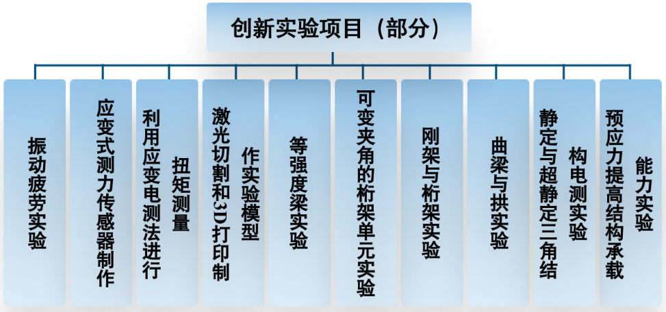 实验室根据学校专业设置的特点,以多学科综合交叉为重点,课程设计、毕业设计、学科竞赛、大创项目为依托,开设创新实验项目,以培养学生实践能力和创新意识。实验室利用现代化教学手段,根据实验教学改革思路和方案,为土木工程、机械工程、建筑环境与能源应用工程等十几个专业开设了一批具有较高水平的基础型和创新型实验,并以此为基础形成不同层次的课程模块,为本科不同年级学生建立分层次的实验教学体系,达到培养相应能力的目的。