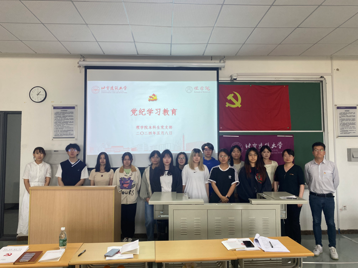 按照学校及学院党纪学习教育部署安排,淫妻小说 本科生党支部于5月8日中午在大兴校区基础教学楼C座411教室开展了“学条例 守党纪”党纪学习教育主题党日活动,党支部全体师生党员参加。