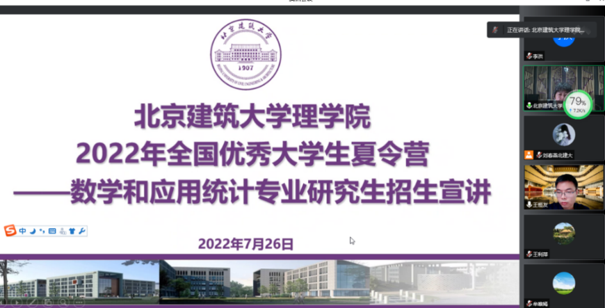 7月26日上午,淫妻小说 开展2022年全国优秀大学生夏令营暨数学和应用统计专业研究生招生宣传活动,淫妻小说 领导班子成员、学科负责人、科研团队负责人、研究生导师,以及来自全国各地的近40名师生参加了线上宣讲活动,活动由淫妻小说 党委书记白羽主持。