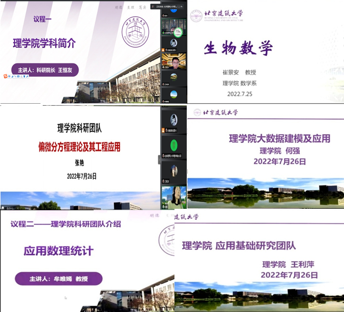 随后,崔景安老师、张艳老师、何强老师、牟唯嫣老师、王利萍老师等先后对生物数学、偏微分方程理论及其工程应用、大数据建模及应用、应用数理统计、应用基础研究等五个主要的科研团队从团队成员、研究内容、研究生培养等方面做了详细阐述,欢迎学生积极报考。