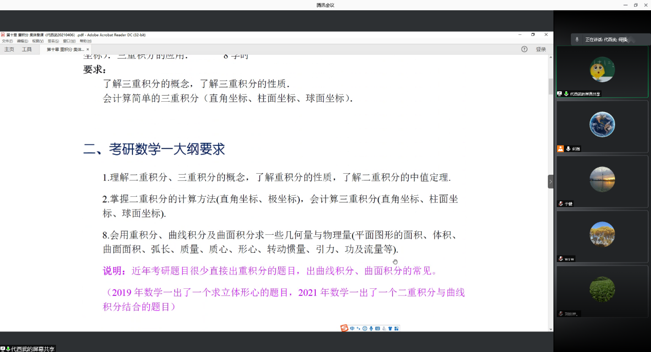 4月6日上午,高等数学教学团队举行本学期第二次集体备课,主要是研讨第九章和第十章的教学内容。备课采用视频会议形式,由数学系副主任、高等数学教学团队负责人何强老师主持,本学期全体高等数学任课教师参会。