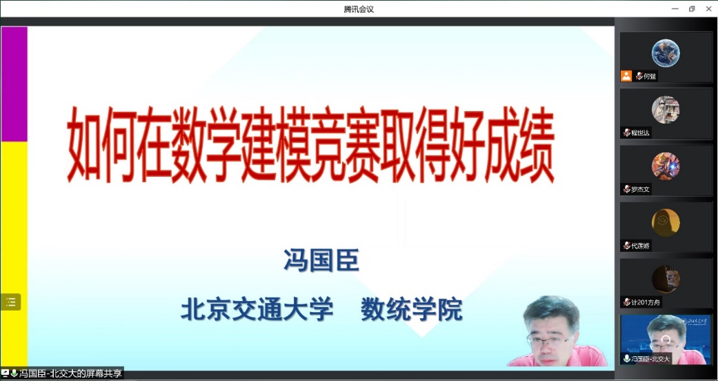 2022年8月22号上午,淫妻小说 邀请数学建模竞赛北京赛区组委会专家、北京交通大学冯国臣副教授,做了题目为“如何在建模竞赛中取得好成绩”的专题讲座。我校参加今年全国大学生数学建模竞赛、全国研究生数学建模竞赛的学生和部分建模指导教师近100人参加了本次讲座。