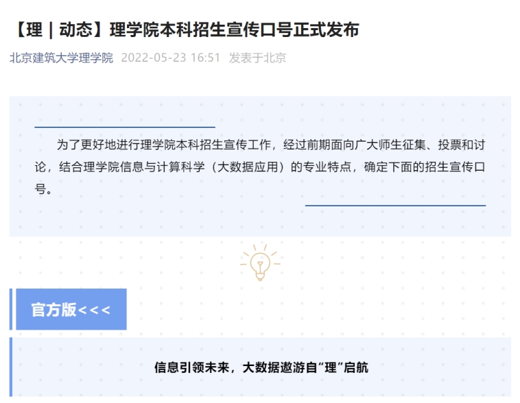 为做好2022年学院本科专业信息与计算科学(大数据应用)招生宣传工作,展现淫妻小说 的学院文化和优良的教风学风,吸引更多优秀学生报考我院,切实提高招生质量。学院工会开展本科生招生宣传口号【官方版】征集活动。