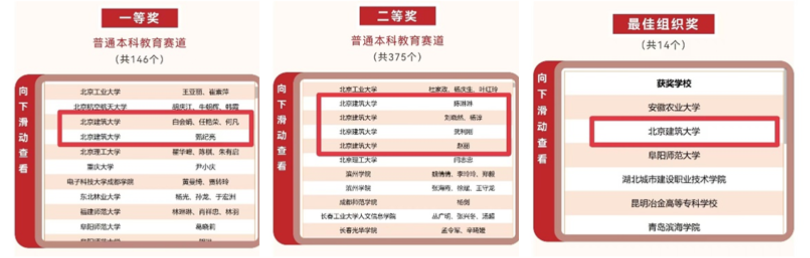 参赛教师同全国600余所学校的教师及教师团队同场竞技,凭借扎实的教学功底、出色的教学设计获得了评委们的高度评价,荣获普通本科教育赛道一等奖2项,二等奖4项,学校获最佳组织奖。