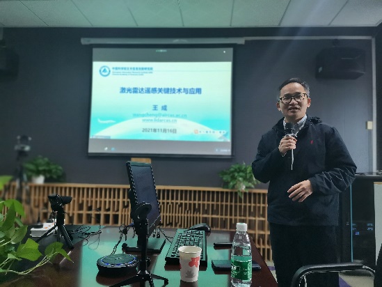 报告会上,王成研究员围绕激光雷达遥感前沿技术发展,介绍了激光雷达遥感理论,激光点云、波形、光子数据处理中的关键技术,以及激光雷达遥感在林业调查、地形测绘,城市监测,电力巡线、文物保护、自动驾驶等领域的典型应用,并对其团队开发的激光雷达数据处理软件“点云魔方”和“波形魔方”进行了介绍。
