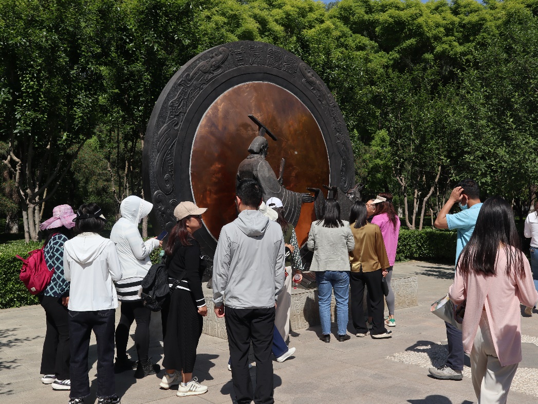 随后大家参观“甘棠镜鉴”景观,这是周召公推行仁政,在甘掌树下停车驻马、处理政事,不扰民众,深得百姓爱我和拥护的故事。在大、小于成龙雕像师生们通过碑匾的文字,了解了“天下第一廉吏”于成龙他们两袖清风的清廉作风,和取得造福一方、文教兴盛的卓伟政绩。