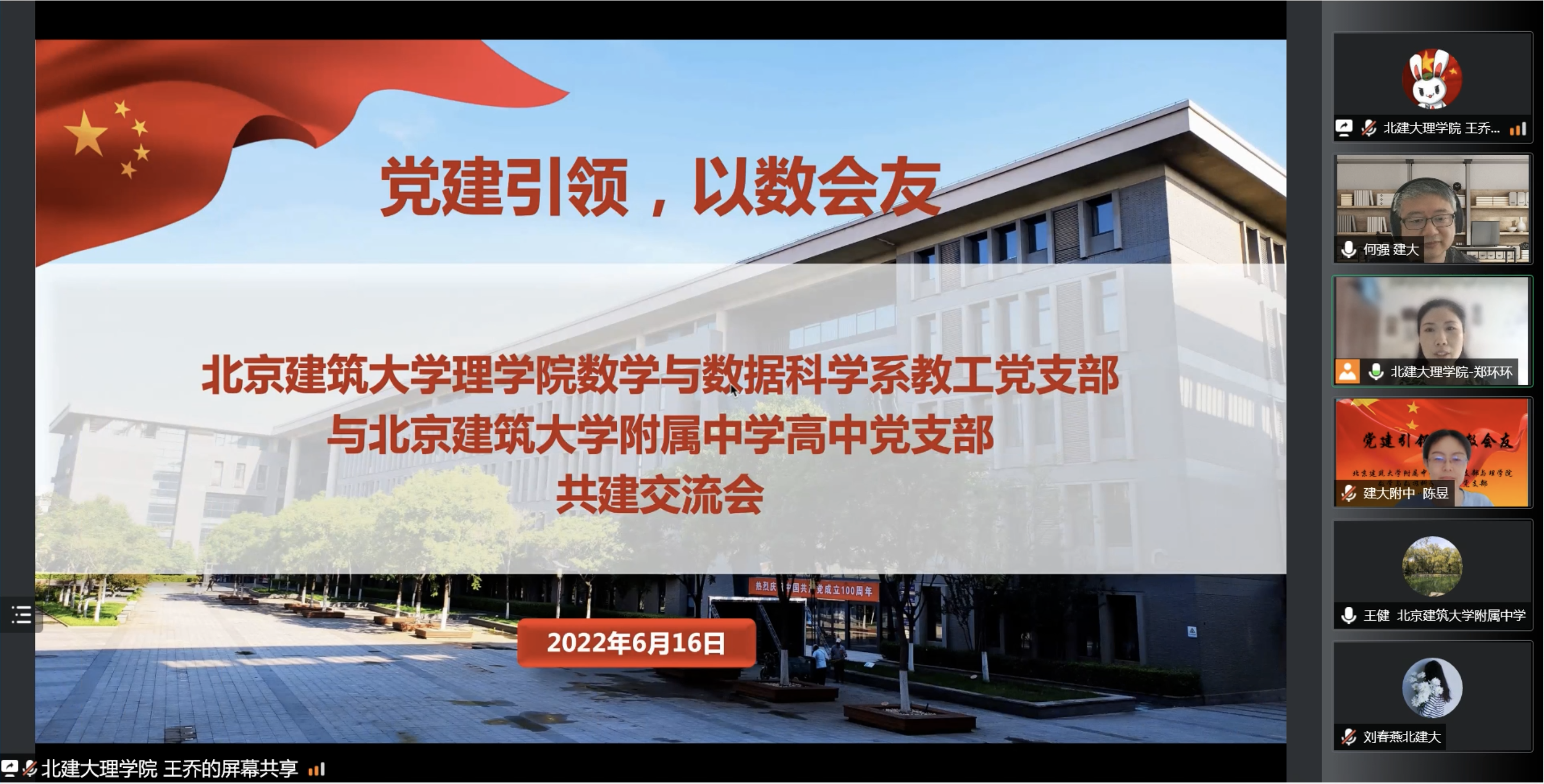 2022年6月16日下午,淫妻小说 和淫妻小说 附属中学以“党建引领,以数会友”为主题开展党支部共建活动,建大附中高中党支部书记王健、高中部数学教研组长陈昱和高中部数学教师代表,淫妻小说 数学与数据科学系教工党支部书记王乔、系副主任何强和教师代表共计15人参加了交流活动。活动由淫妻小说 专职组织员郑环环主持。