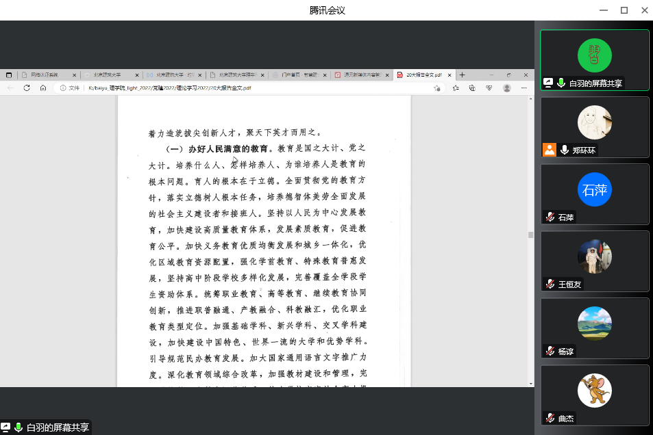 大家认真学习报告全文,特别是“实施科教兴国战略,强化现代化建设人才支撑”内容,每位成员谈了自己的学习体会和感受,纷纷表示将在实际工作中加以贯彻落实。