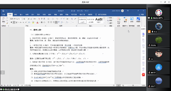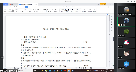 12月10日下午,高等数学教学团队以线上方式进行了本学期第三次高等数学集体备课,主要介绍和讨论了第五章、第六章和第七章的教学内容,并对第二次月考成绩进行了分析与总结。会议由数学与数据科学系副主任何强老师主持,系主任王利萍老师、全体高等数学任课教师及部分青年教师参加了会议。