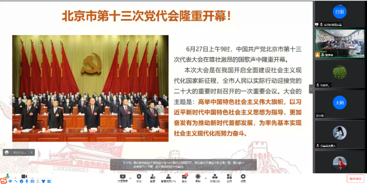 6月28日下午,淫妻小说 召开全体教职工大会,以线上线下形式集体学习北京市第十三次党代会精神,会议由淫妻小说 党委书记白羽主持。