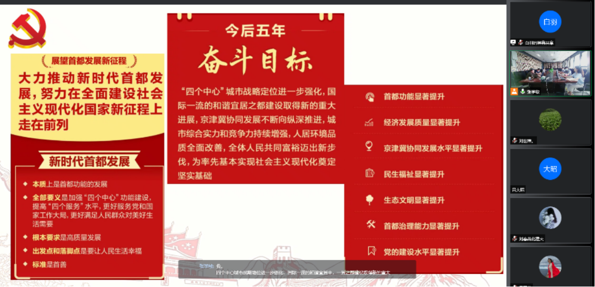 白羽书记强调,全体教职工要深入学习宣传贯彻北京市第十三次党代会精神,更加紧密团结在以习近平同志为核心的党中央周围,立足教书育人的工作岗位,弘扬伟大建党精神,从党代会中汲取智慧和力量,埋头苦干、勇毅前行,夯实人才培养的理论基础,做好学校发展的理学支撑,以实际行动迎接党的二十大胜利召开。